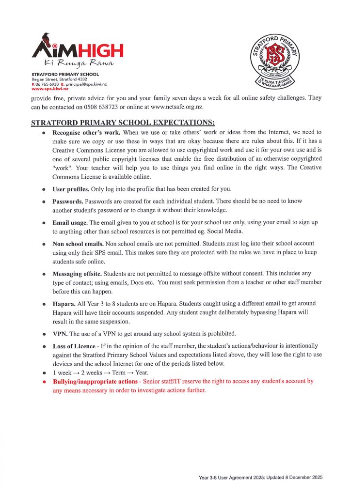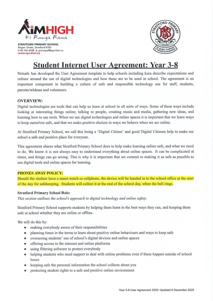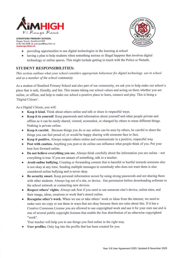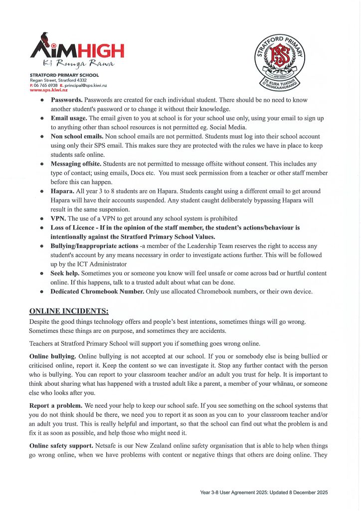 Internet User Agreement for Year 3-8 (2026)